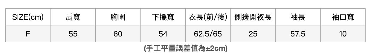 肩寬40/胸圍75/腰圍61/臀寬86(cm)