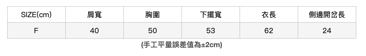 肩寬40/胸圍75/腰圍61/臀寬86(cm)