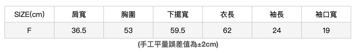肩寬40/胸圍76/腰圍61/臀寬91(cm)
