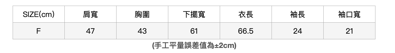 肩寬40/胸圍76/腰圍61/臀寬91(cm)