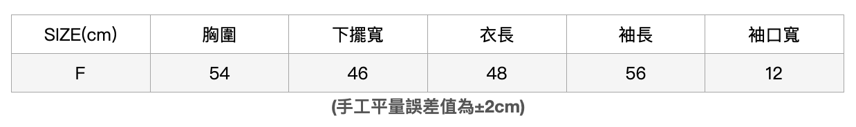 肩寬40/胸圍76/腰圍61/臀寬91(cm)