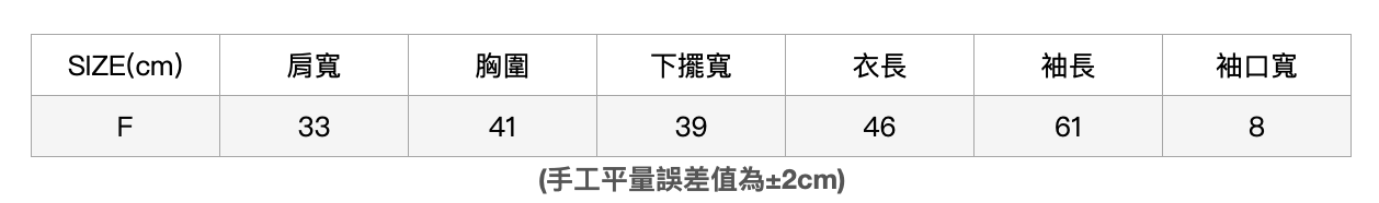 肩寬40/胸圍75/腰圍61/臀寬86(cm)
