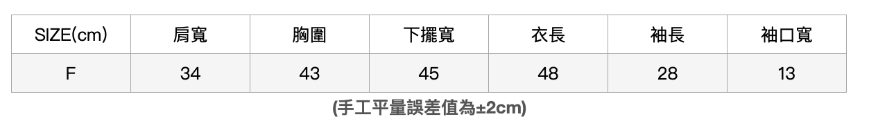 肩寬40/胸圍75/腰圍61/臀寬86(cm)